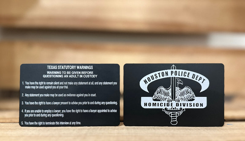 Two Side Custom Engraved Metal Law Enfrocement Legal Advisement Cards